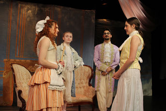 In A Game of Love and Chance, all actors participated in a lottery system at the top of each performance to determine what role they would perform. The actors also improvised the dialogue, therefore the Rococo aesthetic was important to ground the story in 1730s France. Additionally, the actors had to start the show in base layers to allow for quick dressing after the pre-show, so I worked with each member of the cast to create a personalized look based off of historical undergarments.